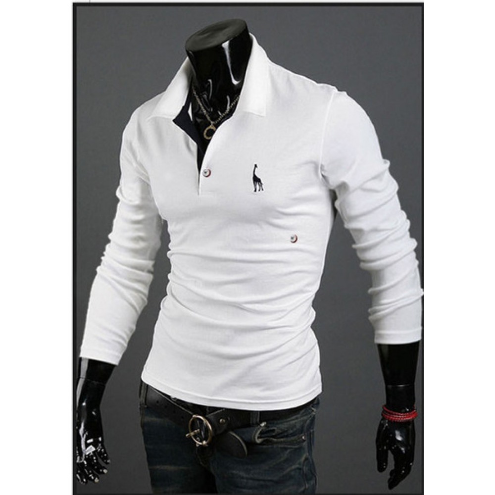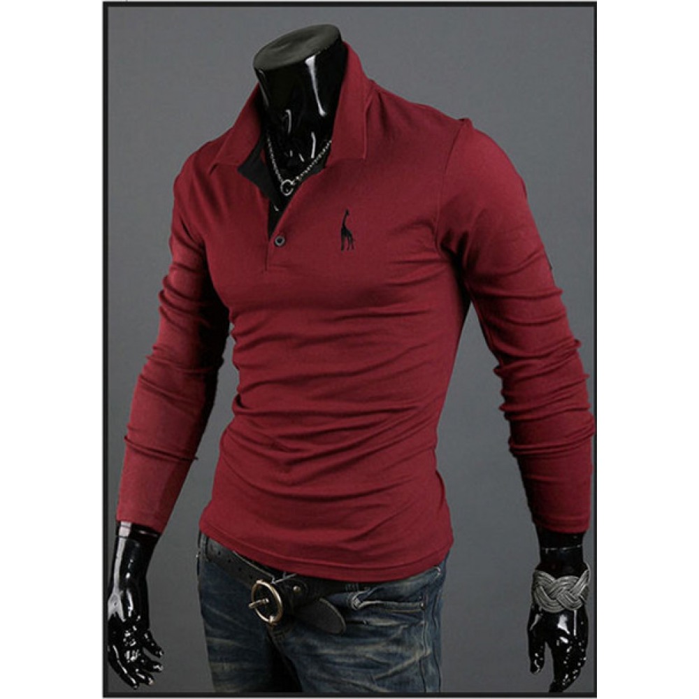 Long-Sleeved Lapel Men's T-Shirt Solid Color Top One-Piece Long-Sleeved
