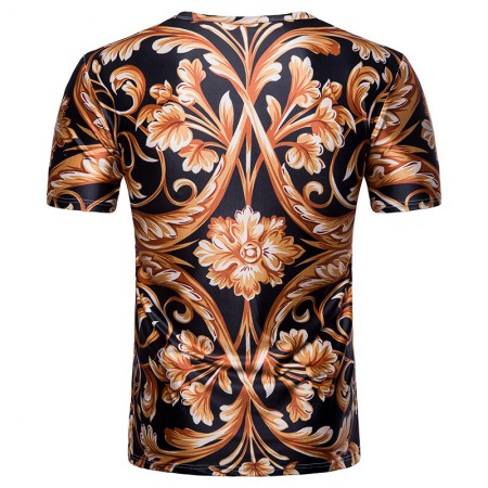 Men's 3D Printing Short-Sleeved T-Shirt Casual Flower Printing Palace Style T-Shirt