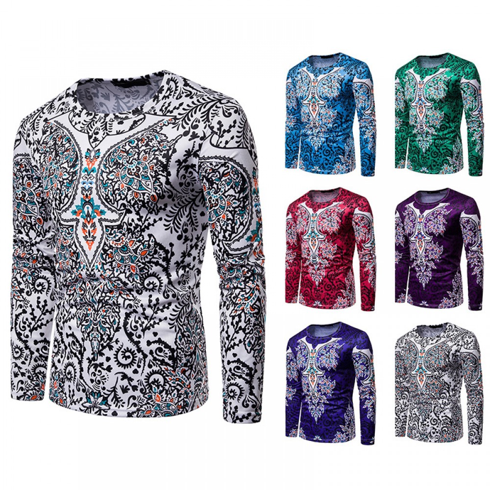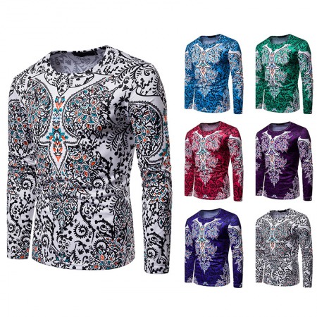 Men's Ethnic Style Floral 3D Printing Round Neck Long Sleeve T-Shirt