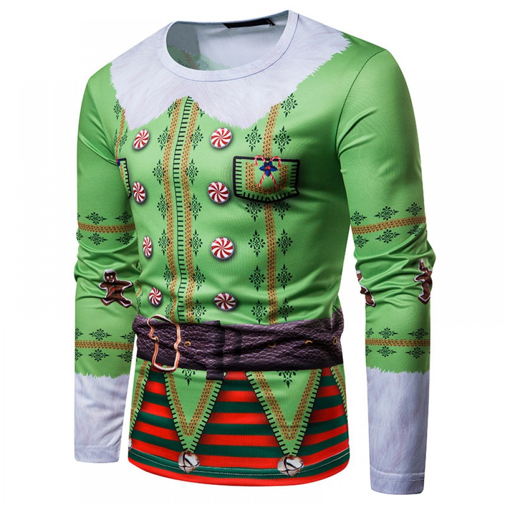 New 3D Personality Printing Fashion Men's Christmas Long-Sleeved T-Shirt