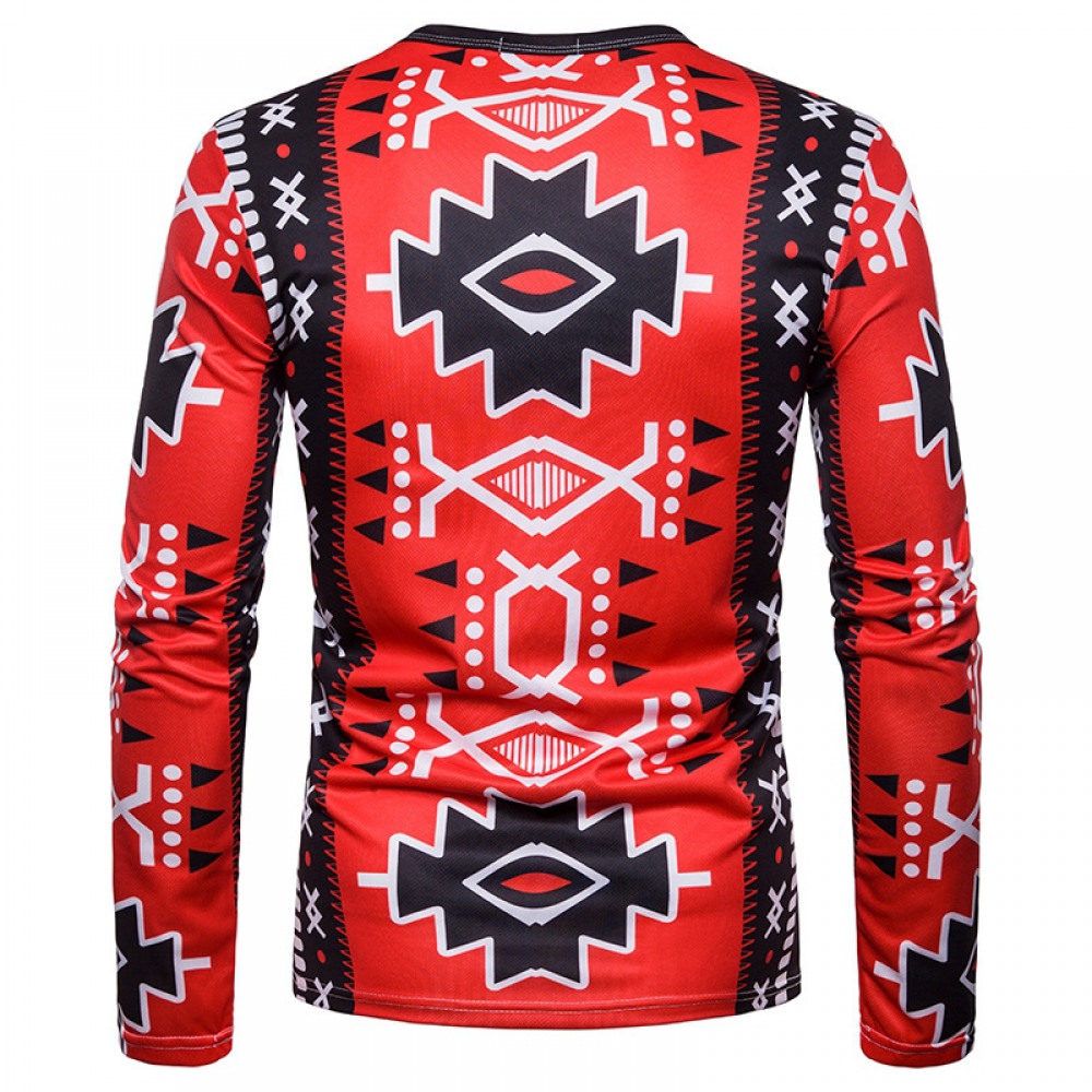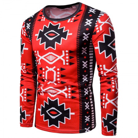 Men's Personality Ethnic 3D Printing Round Neck Long Sleeve T-Shirt