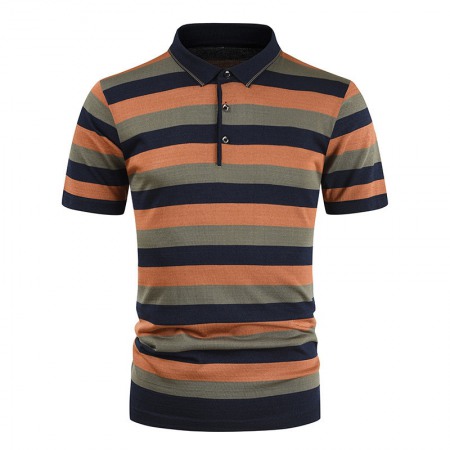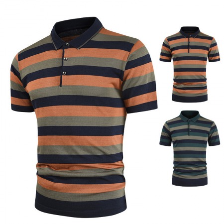 New Men's European Size Thick Striped Short-Sleeved T-Shirt